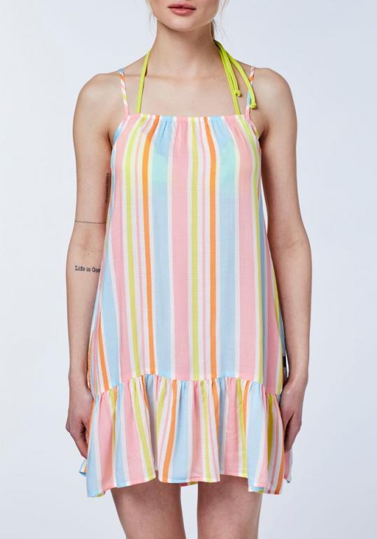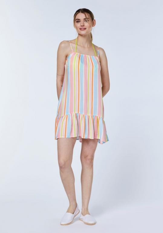 CHIEMSEE Damen Sommerkleid im bunten Streifendesign Regular-Fit Verstellbare Spaghettiträger Leicht gesmoked im Rücken Reine Viskose